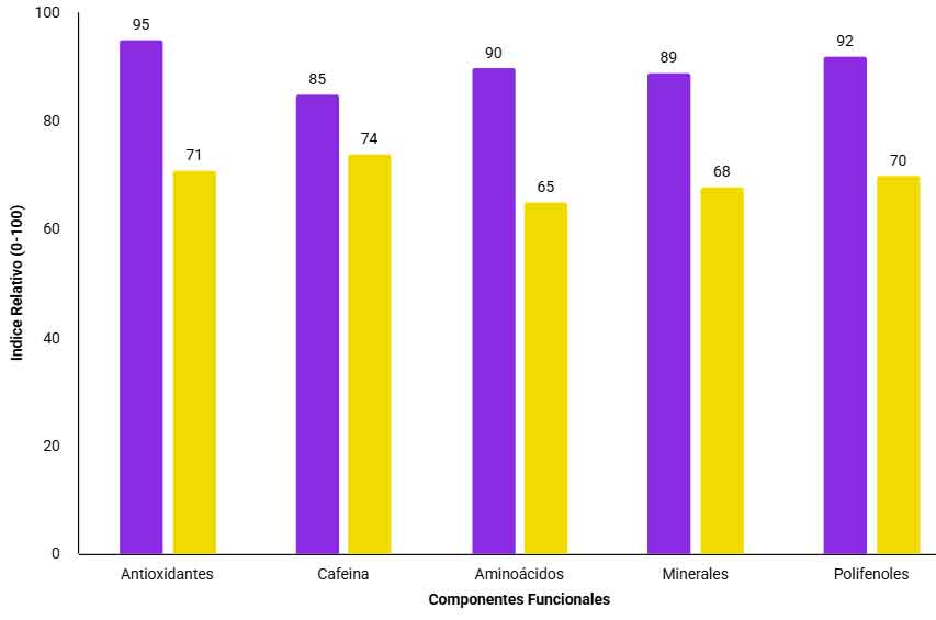 La variedad Geisha cultivada en Brasil presenta un perfil bioquímico excepcional que la distingue de otras variedades de café, ofreciendo beneficios funcionales naturales superiores sin necesidad de aditivos.